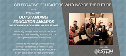 The STEM Forward Outstanding Educator Awards recognize educators who demonstrate excellence, innovation, and leadership in advancing science, technology, engineering, and mathematics learning. This event brings together educators, school leaders, partners, and community members to celebrate those shaping the future of education across Southeast Minnesota.