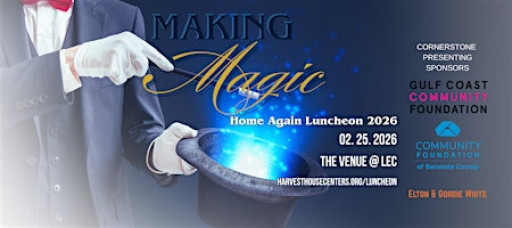 Step behind the curtain at Harvest House’s 14th annual Home Again Luncheon: Making Magic. Together, we’ll uncover the transformation happening every day in the lives of approximately 1,000 men, women, young adults, and children who find refuge and recovery with us each year.