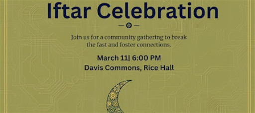 Join us for a delicious Iftar gathering in Rice Hall with The Connect and Engineering Student Council. This event is open to all!