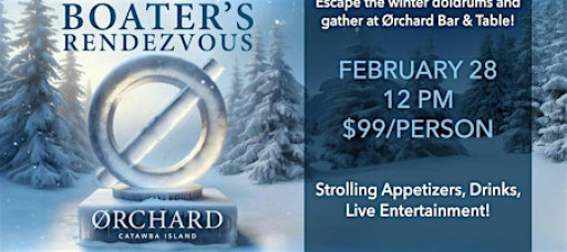 Join us for the 3rd Annual Boaters Rendezvous on Saturday, February 28th, from 12-4 PM at the Orchard Bar & Table.