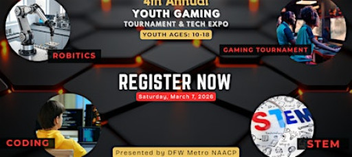 The 4th Annual Youth Gaming Tournament & Tech Expo, presented by DFW Metro NAACP, brings together competitive gaming, STEM, coding, robotics, tech careers, vendors, and community — all in one powerful experience for youth ages 10–18 and their families.