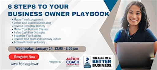 Unlock the success you've always envisioned for your business at our exclusive "6 Steps to Your Business Owner Playbook" workshop!