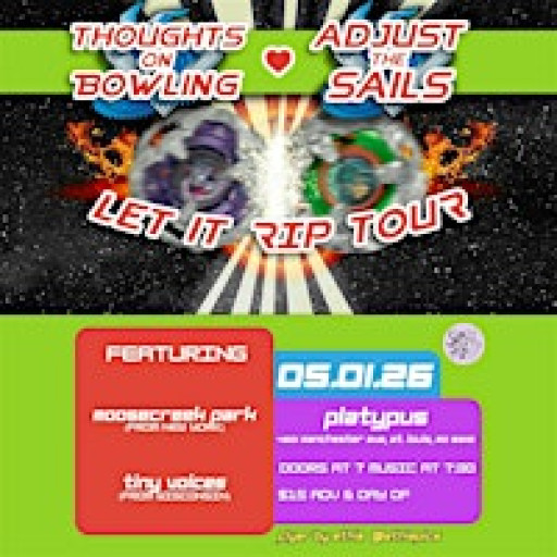 4 band emo bill at Platypus. Adjust The Sails, Thoughts on Bowling, halftimeshow, and MooseCreek Park. Let it rip