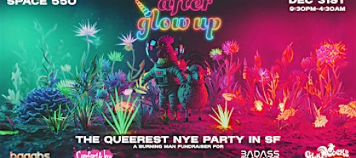 After Glow Up is more than a party, it’s a celebration of queer art, expression, and radical inclusion. Hosted by Burnign Man camps Comfort & Joy, BAAAHS, Bad Asstronauts, and Glamcocks proceeds help us: