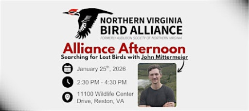 NVBA staff and the Board of Directors will kick off the meeting by conducting chapter business, followed by celebrations of the 2025 Christmas Bird Count and the 2026 Photo Contest Calendar. The agenda will then move into a discussion of upcoming advocacy opportunities and other chapter updates. Our featured presentation will be given by guest speaker John Mittermeier of the American Bird Conservancy, who will speak on the Search for Lost Birds. The presentation will conclude with time for audience questions before we wrap up this quarter’s meeting around 4:30 p.m. Following the meeting, guests are welcome to stay for NVBA’s Volunteer Recruitment Fair, where NVBA staff and committee chairs will highlight upcoming volunteer opportunities for participants to explore and consider joining.