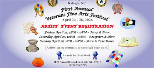 1. This art festival is open to ALL veteran artists (Navy, Marines, Army, Air Force, Space Force, Coast Guard, National Guard, and Reserves) from North Carolina. Note: this is NOT the American Legion National VA Art Contest.