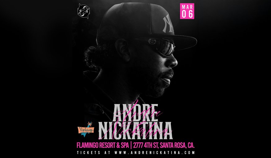 Spend an intimate night with Andre Nickatina at Vintage Space inside the Flamingo Resort & Spa. This is a rare chance to experience one of the Bay Area’s most influential voices in a close-up club setting, where every lyric lands and the energy stays raw and personal. Known for his unmistakable flow, cult-classic catalog, and deep West Coast roots, Andre Nickatina brings his signature presence to Santa Rosa for a special evening that feels less like a stadium show and more like being in the room with the music itself. Expect a focused, high-vibe performance designed for fans who appreciate the nuance, storytelling, and grit that define his legacy.