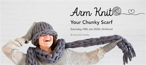 In this cozy, beginner-friendly workshop, you’ll learn how to arm knit a chunky scarf – no needles, no prior knitting experience, just your arms and some yarn.