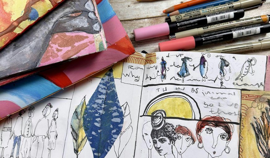 Discover the joy of art journaling in this relaxed, hands-on class. Each session will explore approachable techniques—such as mixed-media layering, collage, mark-making, lettering, and intuitive drawing.