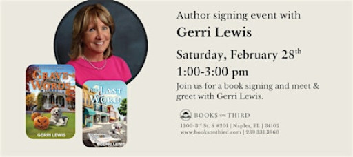 Join us at Books on Third for an in-store author signing with Gerri Lewis, author of The Last Word and Grave Words, the first two books in her charming Deadly Deadlines Mystery series.