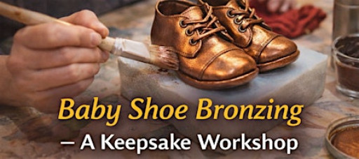 Participants bring a single pair of baby shoes and are guided through the bronzing preparation and finishing process, transforming a cherished item into a lasting keepsake. The session is thoughtfully paced and instructor-led, with time for care, detail, and intention.