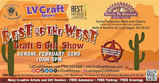 It’s the Best of the West Craft & Gift Show! LV Craft Shows® will be INDOORS inside the Centennial Ballroom upstairs at the Santa Fe Station Hotel & Casino. Many artists & vendors with original crafts, handcrafted & handmade items, cottage foods, vintage, art, and other unique gifts.