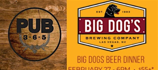 Come join us for a night of delicious food and amazing beer at Pub 365! We're hosting a special beer dinner on February 27, 2026 at 6:00 PM (Pacific Time). Get ready to indulge in a mouth-watering menu paired perfectly with Big Dog's Brewing Company's finest brews. Don't miss out on this unforgettable culinary experience!