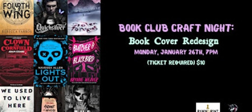 During this craft night we will be doing a book cover redesign. Pick any book that we have read for book club and think about how you would like to redesign it's cover. Everyone will receive a 4x6 book board and I'll have paints, markers, and more available.