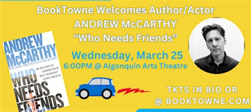Tickets inlcude a signed copy of the book as well as an opportunity to meet Andrew McCarthy at BookTowne after the show for a quick photo op.