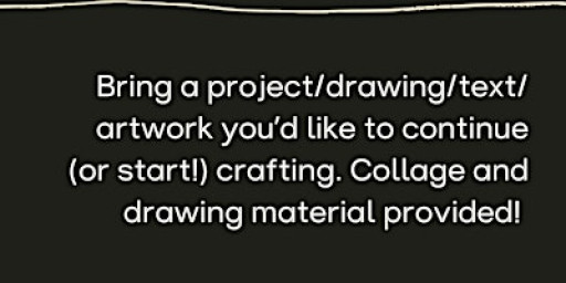 Everyone is invited to bring something they’d like to continue (or start) crafting — a project, print, drawing, song, poem, text, collage, crochet… anything you like and can carry with you!