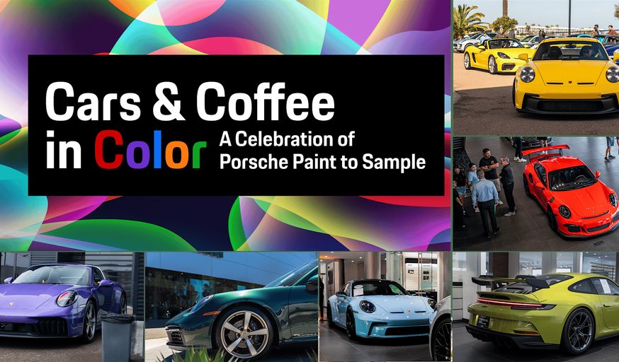 Experience Porsche from a colorful perspective at Cars & Coffee in Color. We invite Porsche owners to bring their cars and be part of the celebration while enjoying complimentary refreshments and strolling through curated displays of Porsche models finished in eye-catching Paint to Sample hues. Join us in celebrating the vibrant individuality of the Porsche community!