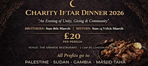 Join us this Ramadan for a powerful evening of unity, reflection, and giving at our Charity Iftar Dinner 2026 hosted at The Grande Restaurant, Stratford.