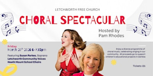 Join us for a wonderful evening of singing hosted by Songs of Praise presenter Pam Rhodes and featuring special guest soprano Susan Parkes. The programme includes choral numbers sung by the award-winning Bax Choir from Heath Mount School directed by Lucy Joy Morris and Letchworth Community Voices directed by Robert Fisher.