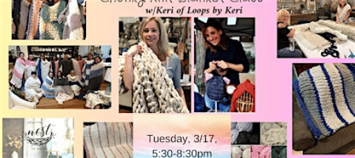 Join us at Nest with our experienced instructor Keri Puglisi (Loops by Keri) and make a one-of-a-kind chunky knit blanket that has taken social media by storm. These trendy blankets don’t just look great, they feel great, too. No knitting experience is needed to take this class. No needles either, just your hands!