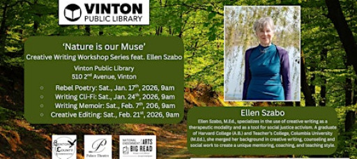 This event is part of Vinton's Big Read, a community-wide celebration of the arts and humanities. This project was supported in part by the National Endowment of the Arts, Arts Midwest, the Charles and Helen Yundt Charitable Foundation, and the Friends of the VInton Public Library in memory of George and Pauline Grovert.