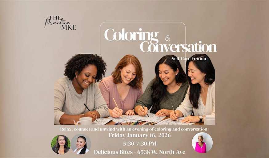 Hosted by The Practice MKE, this event is thoughtfully facilitated by Licensed Professional Counselors who specialize in women’s mental health and emotional well-being. While this is not a therapy group, the space is intentionally warm, grounded, and supportive allowing conversation to flow naturally and authentically.