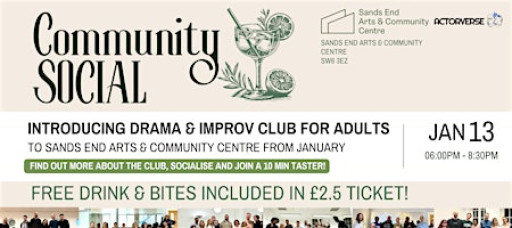We’re excited to announce that our Drama & Improv Club For Adults will now run once a month at a second location in the heart of Fulham, at the fantastic Sands End Arts & Community Centre, and we’d love for you to join us, meet the community and learn more through fun mini games that will take place throughout the evening.