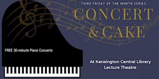 Concert & Cake is a free monthly concert series running from January to July 2026, showcasing outstanding concert pianists in an informal, friendly setting.