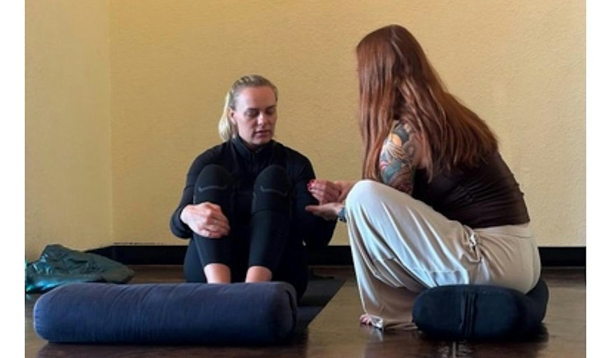 The class is taught with yogi, Colleen McHenry and DOM, Briana Egger.