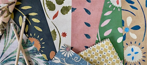 We have planned a lovely January session inspired by one of Lewis & Wood's latest designs, Folklore, a pretty stencilled print. Alexandra will show you how to create and cut your own stencil shape and print using a range of methods. You can experiment with printing on plain fabric or wallpaper or overprint onto existing designs for a layered look.