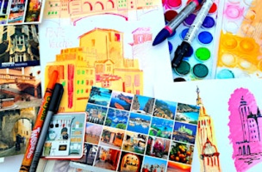 Discover how to use a sketchbook to connect & record the scenes around you from travel & holidays. Learn valuable skills that you can continue to use & develop sketches