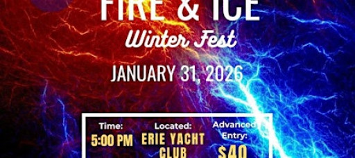 Join us January 31st, 2026 at the Erie Yacht Club, on the shores of Presque Isle bay, for a night of Fire & Ice. The CRI Fire & Ice Winter Fest includes an outside ice bar, martini luge, DJ/music, food, samples from local wineries and distilleries, raffles and we are excited to announce we will have Fireworks!! Fireworks are sponsored by Rebich Investments! Wear your finest parka and please join us!