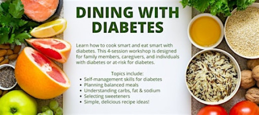 Dining with Diabetes is a Colorado State University Research and Extension health and wellness program that consist of a series of four in-person classes that includes general diabetes information, eating plans for diabetes and how to prepare healthy foods. The program's focus is to help individuals learn strategies to lessen the health risks of diabetes.