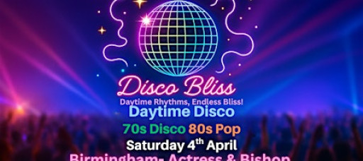 DISCO BLISS DAY TIME DISCO - Birmingham - Actress & Bishop - SATURDAY 4TH APRIL 2026