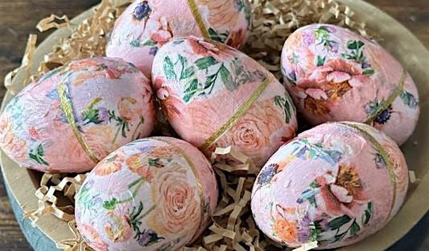Enjoy a crafty easter, creating DECOUPAGE EGGS, CARDS and PLANT POT DECORATIONS.