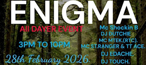Get ready for a full day of Drum & Bass energy as ENIGMA – All Dayer Event takes over The Camden. Enjoy powerful sets from top DJs and MCs including Shockin B, Dutchie, MTEK, St. Ranger, TT Ace, Edache, Touch, Tony Castle, Dizzy Blonde & SK, Mr Quest, Steppa and Fussion.