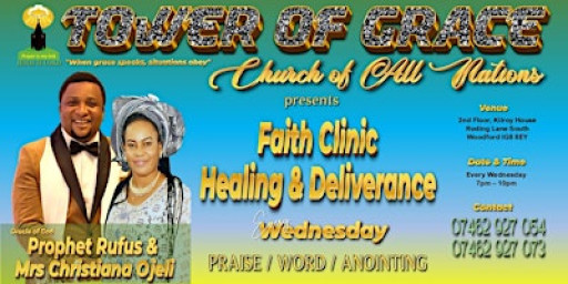 Join us for a powerful Faith Clinic of healing and deliverance, where major divine transformations will take place under the stewardship of Prophet Rufus Ojeli and Mrs Christiana Ojeli at Tower of Grace Church of All Nations (TGCAN), a purpose-driven church and a beacon of hope. This is a must-attend event where lives will be profoundly changed in the name of Jesus Christ our Lord.