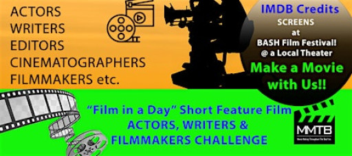 -ACTORS WARNING- MUST REGISTER FAR IN ADVANCE AND ARRIVE AT 9AM. In order to take this challenge, you need to be flexible Must be able to work well with others without any EGO. You will get at least a few lines in the short but usually more unless you got the VIP pass, then you will have lead or supporting role. You will receive role and wardrobe requirements at least the day before event. You will get script when you arrive and will have time to rehearse with others.