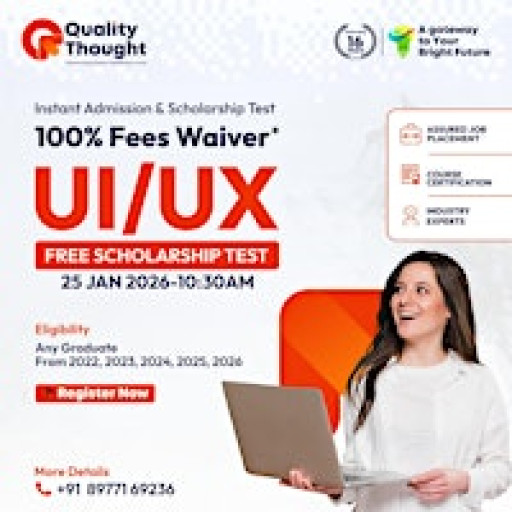 Quality Thought, a trusted Software Training Institute since 2010, is proud to announce a Free Scholarship Test on UI/UX Design Training scheduled on 25 January 2026 at 10:30 AM onwards, available in both Online and Offline modes. This scholarship test is a golden opportunity for aspiring designers, students, fresh graduates, and working professionals to begin or upgrade their career in the fast-growing field of UI/UX Design with up to 100% course fee waiver.