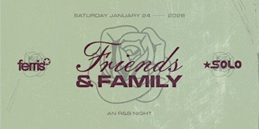 "Friends & Family: An R&B Night" is an intimate night dedicated strictly to R&B, weaving through timeless classics, deep cuts & future sounds of the genre. Featuring the soulful selections of Ferris and DJ Solo, this night is the perfect place to unwind & catch a vibe with the people you love.