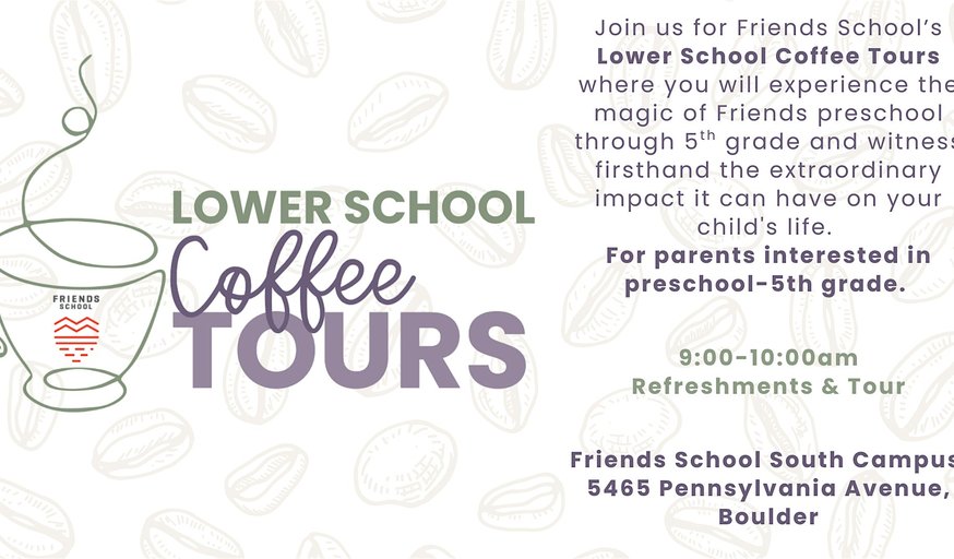 Join us for Friends Lower School Coffee Tours where you will experience the magic of our preschool through 5th grade and witness firsthand the extraordinary impact it can have on your child's life. Enjoy refreshments, chat with our lower school program head and head of school, and experience a very special morning in the life of a Friends School lower school student. For parents intersted in preschool through 5th grade. NOTE THE LOCATION OF THIS EVENT IS AT 5465 PENNSYLVANIA AVENUE IN BOULDER. Please complete an inquiry form here before arriving at the coffee tour.