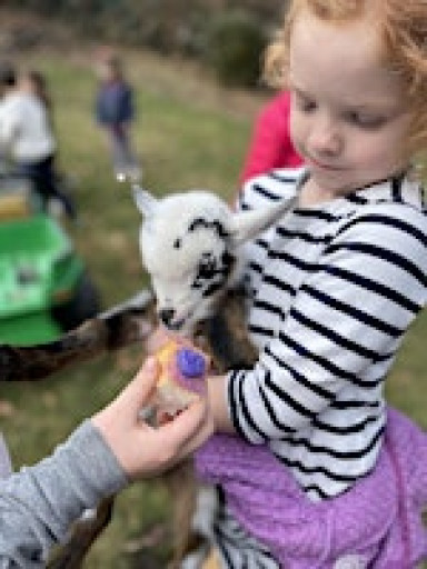 Good Friday Egg Hunt with Baby Goats on March Farm in Bethlehem.