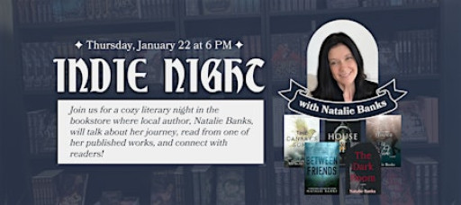Join Burning Pages for an intimate indie author night with Natalie Banks. Enjoy a live reading, a peek into her creative journey, and meaningful conversation with a local author surrounded by books and community. We will have copies of Natalie's books available to purchase at the event.