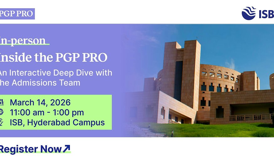Join us in person for an in-depth look at ISB’s PGP PRO - our executive management programme designed for working professionals with 5+ years of experience.