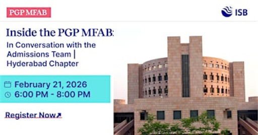 Join us online for an interactive deep dive into PGP MFAB. Explore the programme structure, unique pedagogy, and how it equips you to lead your family business with confidence. Get your questions answered live and receive personalised guidance from the ISB Admissions Team - everything you need to make an informed decision about your next step.