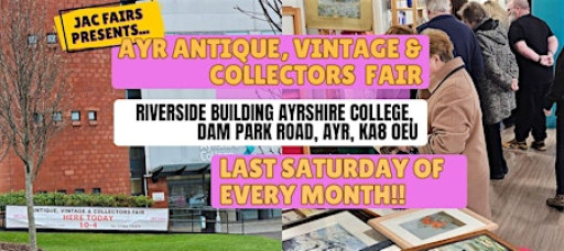 Come visit us at our monthly Ayr Antique, Vintage & Collectors Fair at Ayrshire College, Dam Park Road, Ayr, KA8 0EU - held on the last Saturday of each month.