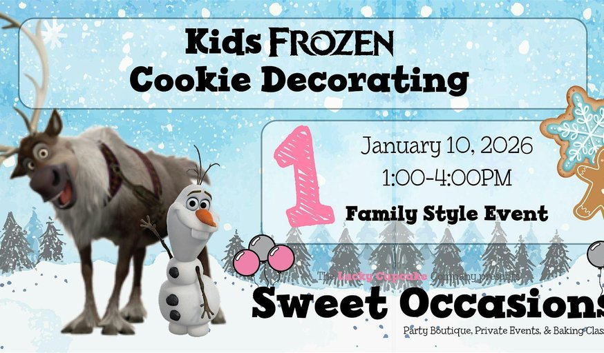 Welcome to the Kids FROZEN Cookie Decorating- Session 1 event at Sweet Occasions! Get into the snowy, winter spirit and join us on Saturday, January 10, 2026 between 1:00 and 4:00 p.m. for a fun-filled afternoon of decorating winter and frozen themed cookies. This in-person event is the perfect way to kick off winter and a new year with friends and family. Don't miss out on this sweet opportunity to create lasting memories. All ages are welcome.