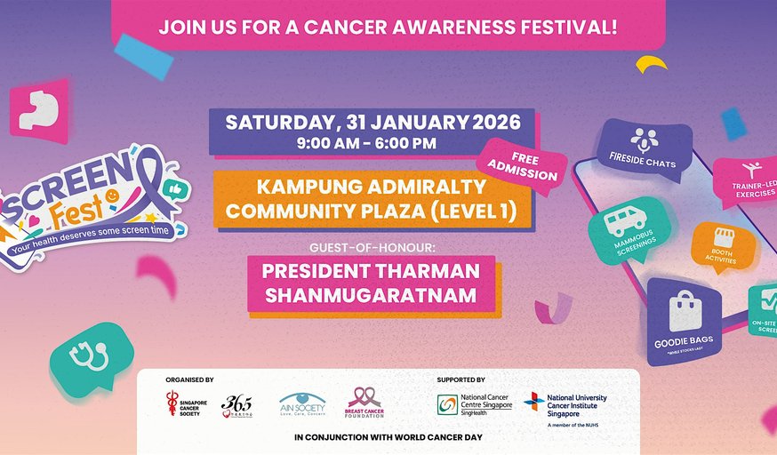 Join us for an open and engaging English cancer awareness fireside chat, organised by Singapore Cancer Society, where experts and lived experiences come together to break down breast, cervical, prostate and colorectal screenings in a simple, honest and relatable way.