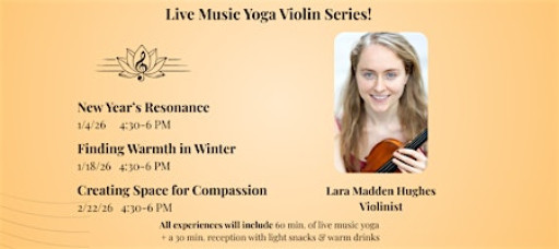You will immerse in a sensory experience, connecting movement to the beautiful classical music of the violin, performed by Lara Madden Hughes. Yoga will be slow flow vinyasa, guided by Caroline Riley (RYT 200). Join us for a reception after the event, with light bites, warm drinks, and friendly conversation. The venue is accessible by public transit (North/Clybourn Red Line stop + multiple bus routes). Parking is available on the street (first come, first serve), with metered parking and parking garages also nearby.