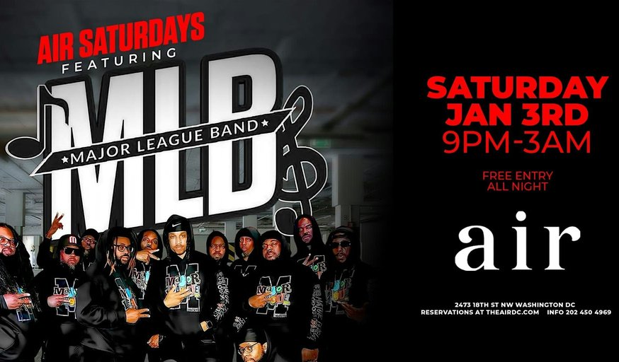 Get ready for an unforgettable night as the Major League Band rocks the stage live at Air DC! This is your chance to experience their electrifying performance up close and personal. Whether you're a longtime fan or new to their sound, the energy will be off the charts. Don’t miss out on this epic in-person show – good vibes and great music guaranteed!